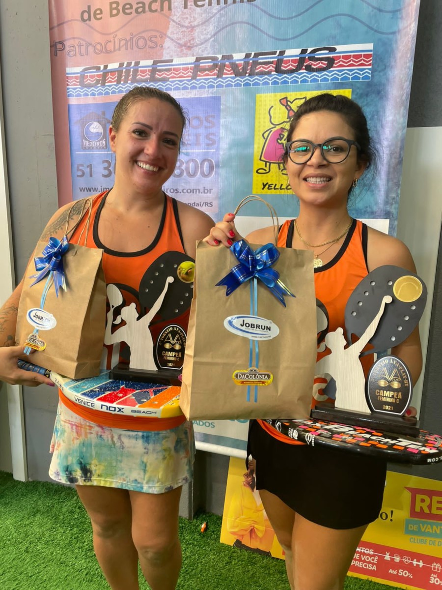 Legenda: Viviane e Jane, campeãs do Feminino Iniciante.