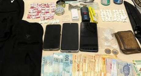 Durante a ação foram apreendidos: uma porção e um cigarro de maconha, 94 porções de cocaína, objetos, incluindo duas facas, três balaclavas e três aparelhos celulares, além de uma quantia em dinheiro no valor de R$ 2.671,00 (dois mil seiscentos e setenta e um reais), assim como o veículo